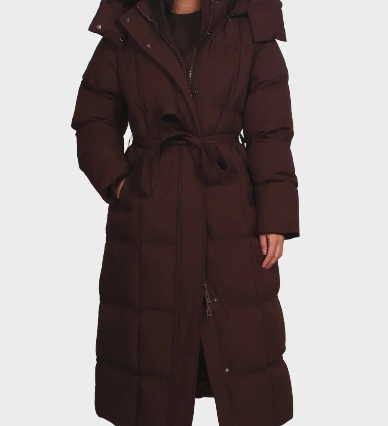 Evelin - Stilski puhovni plašč z dolgim pasom, visokokakovostno