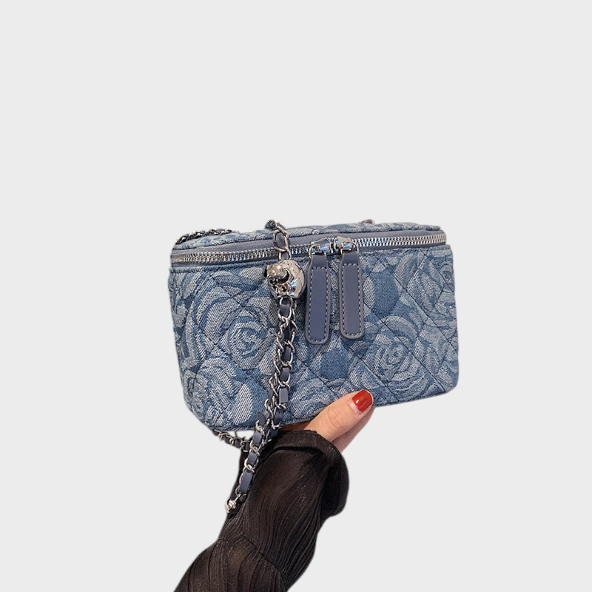Ksenija - Elegantna denimska torbica s cvetličnim vzorcem, popolna za vsakodnevni in svečani stil